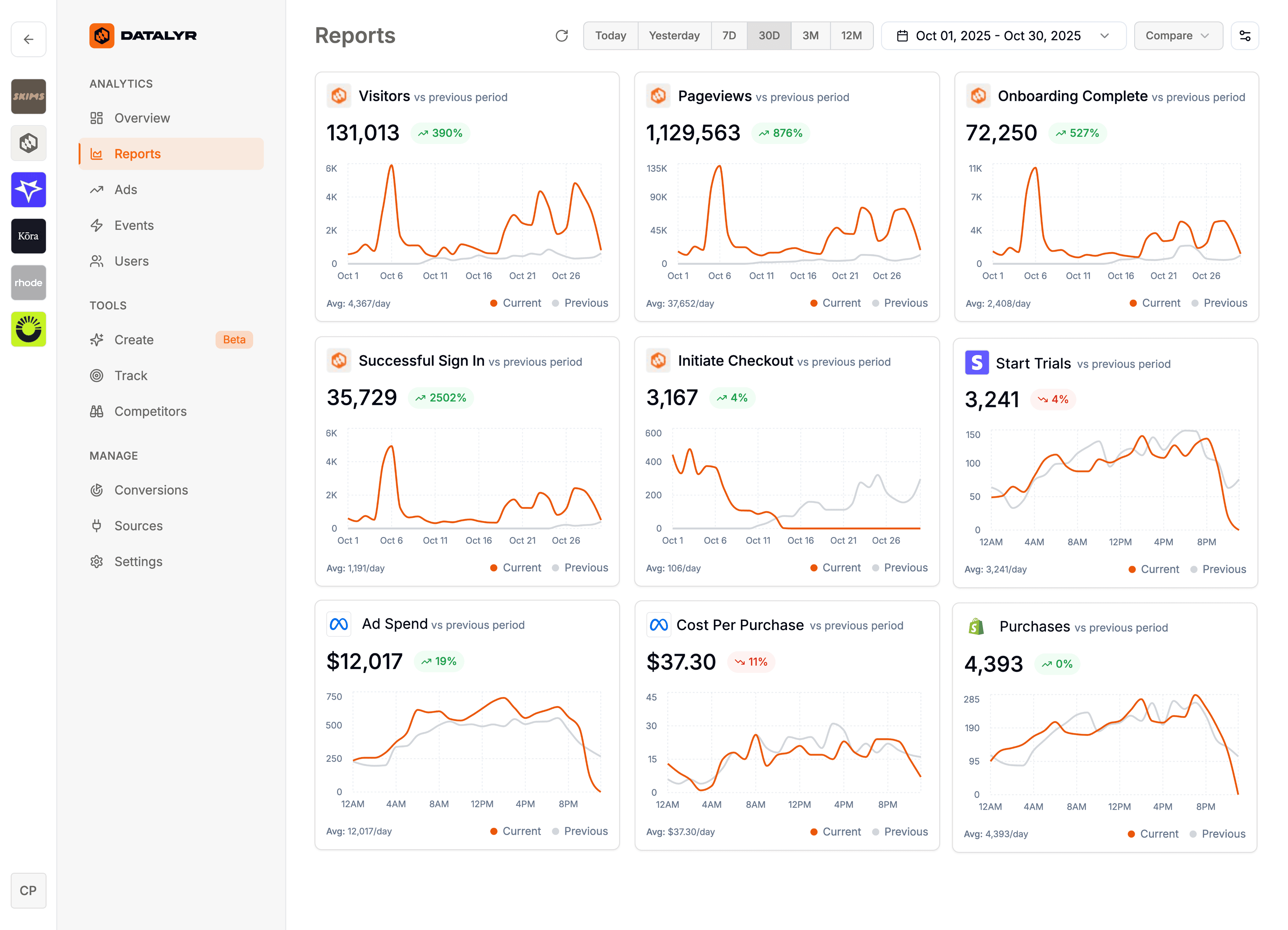 From real-time tracking to competitor intelligence, Datalyr gives you everything you need to scale paid growth. Fast.