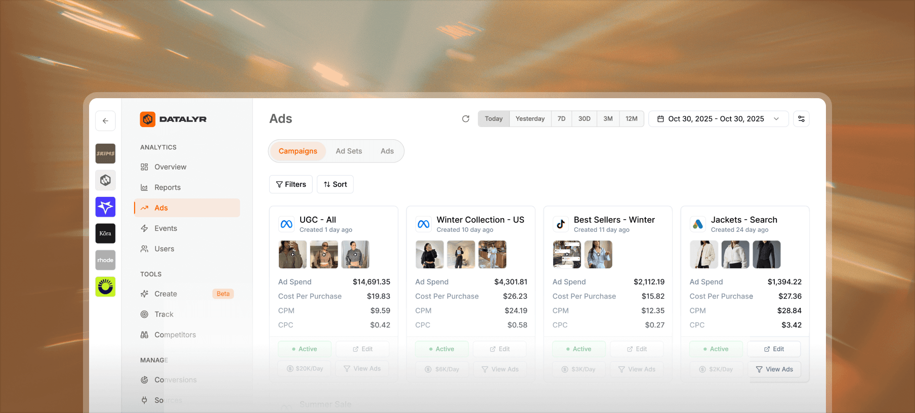 Track every click and conversion across Meta, TikTok, and Google with server-side accuracy.
